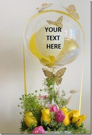TEXT printed stuffed with yellow white balloons and pink yellow